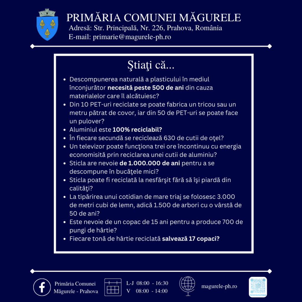 TOATE ACESTEA PENTRU UN MEDIU CURAT ŞI SĂNĂTOS !