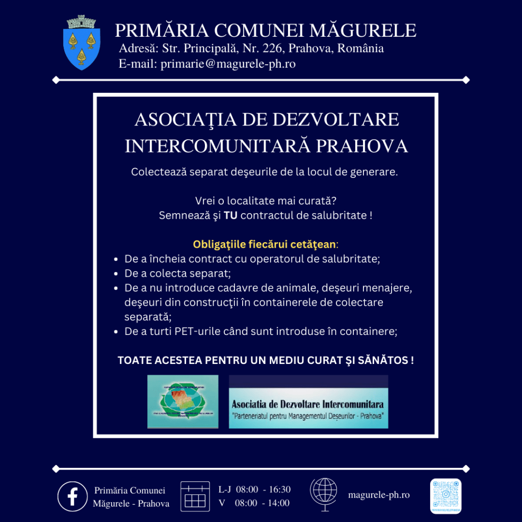 • De a încheia contract cu operatorul de salubritate;