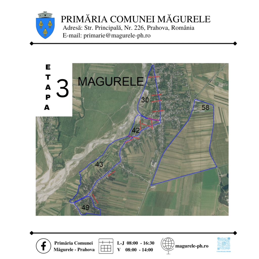 În zilele de 10 şi 11 decembrie 2022, firma prestatoare de cadastru sistematic, SC GEOMATICS INTEGRATED SERVICES S.R.L, va efectua măsurătorile de teren în comuna Măgurele, în prima zonă care cuprinde SECTOARELE: 30,42,43,49 – INTRAVILAN.